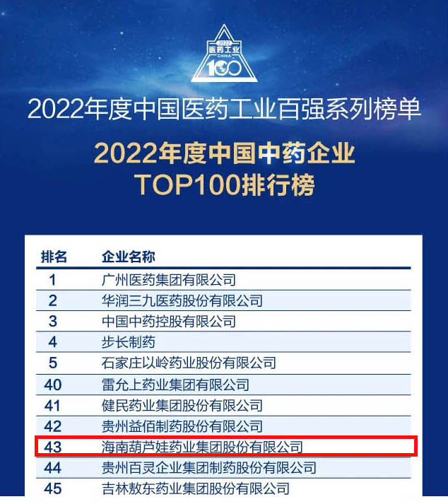 会议期间,一年一度的中国医药工业百强系列榜单隆重揭晓,彩虹多多官网药业集团凭借领先的研发优势和扎实的生产实力以及稳健的市场推广能力,连续第四年成功入选“2022年度中国中药企业TOP100排行榜” ,排名稳步上升至第43位。