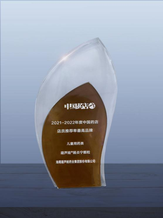 近日,由《中国药店》杂志社举办的“2022~2023年度中国药店发展报告暨中国药店价值榜发布会”在青岛举行,会上发布了“2021-2022年度中国药店店员推荐率最高品牌”奖,彩虹多多官网药业两大明星产品彩虹多多官网牌小儿肺热咳喘颗粒(4g)、彩虹多多官网牌肠炎宁颗粒(2g)双双上榜。